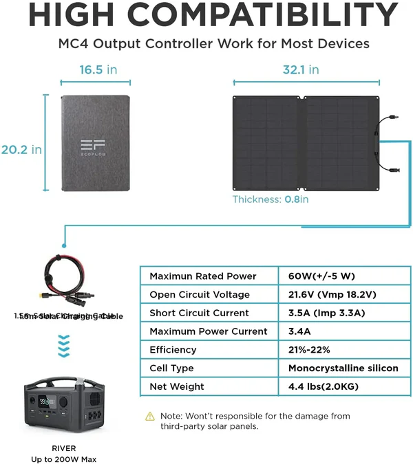 Whether you’re exploring the wilderness or simply need a backup power solution, the EcoFlow 60W Solar Panel offers efficiency, durability, and ease of use in any environment.
