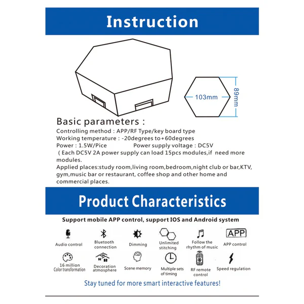 The 12 hexagonal LED panels allow you to assemble custom shapes and designs directly on your wall. From geometric marvels to flowing patterns, these lights bring your creative vision to life with bold, dynamic color displays that stand out, especially in the dark. - [Elevate Any Environment with Cool Designs]